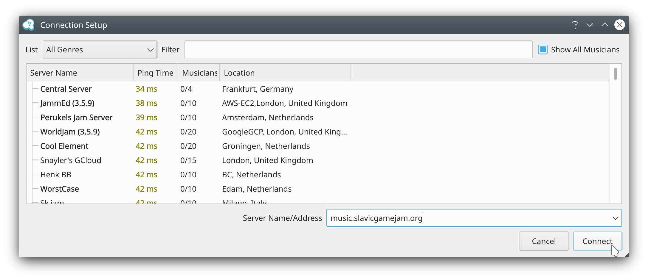 Aside of the dedicated Jam Session hours, the Jamulus server will be online for the whole Slavic Game Jam, so feel free to hop on and play anytime you want!
